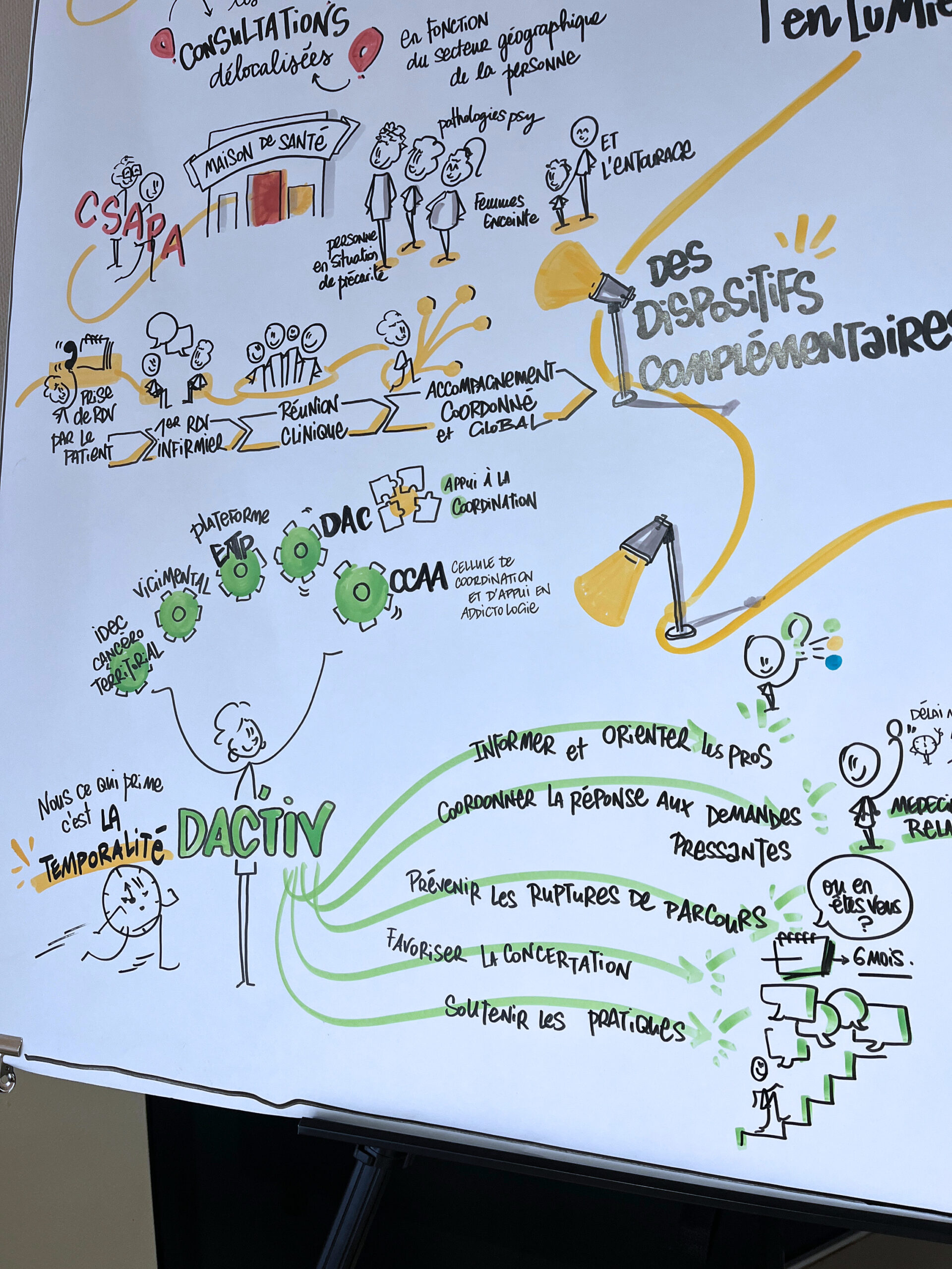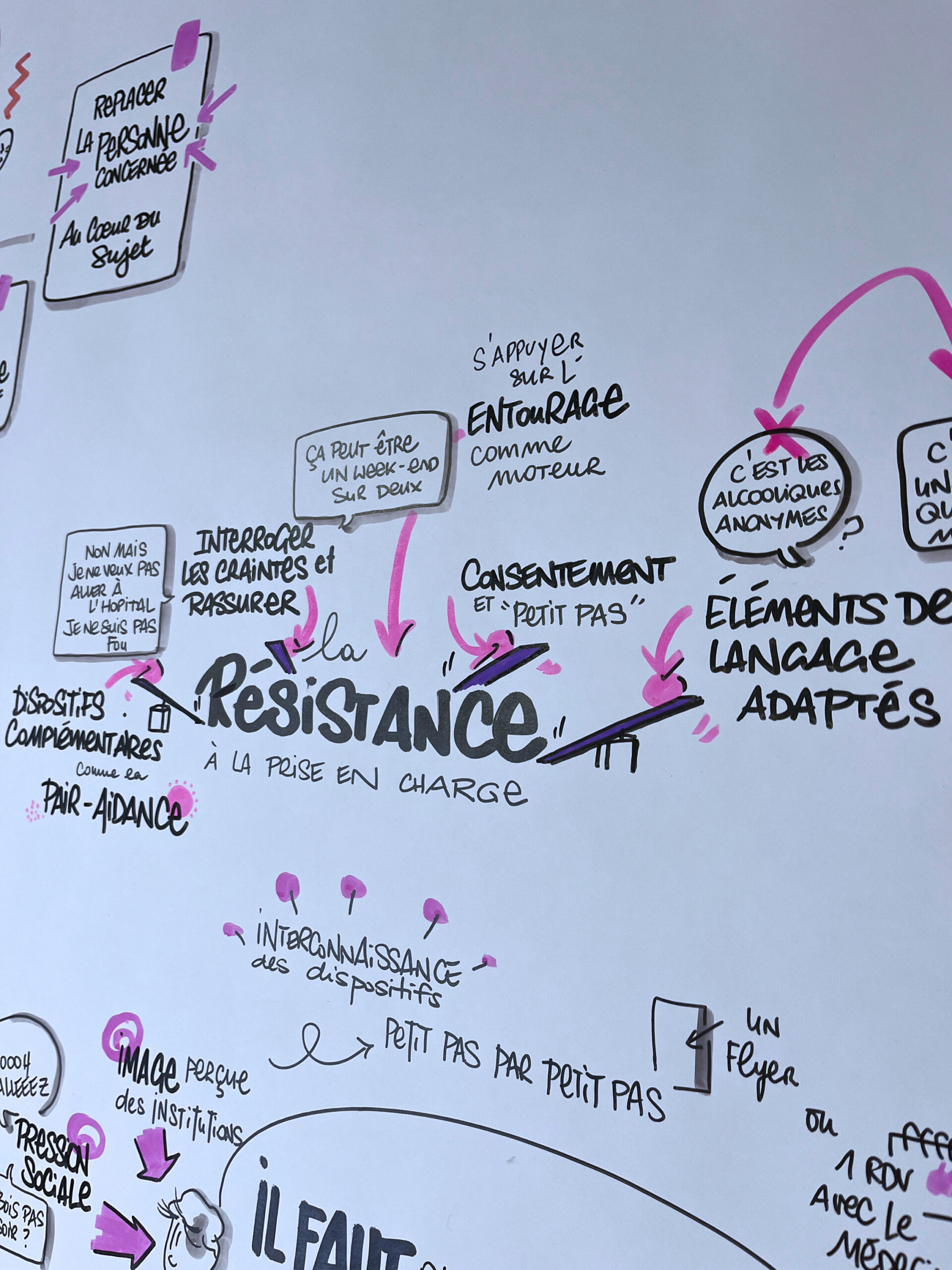 Présentation de la synthèse à la fin de la matinée et de la journée aux participants : un temps de retour sur le contenu et la dynamique de l’évènement.